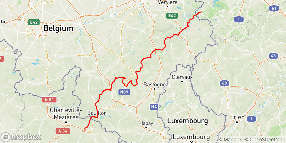 De GR 14 voert je van uit de provincie Luik doorheen heel de provincie Luxembrug om de grens naar Frankrijk over te s...