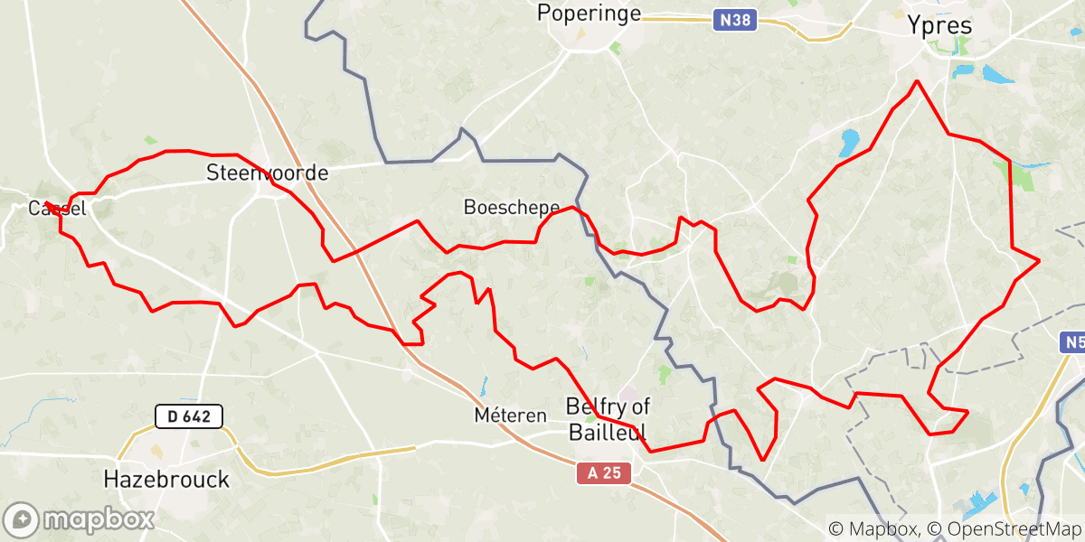 De Streek-GR Heuvelland is doordrongen van panoramische hoogstandjes: Katsberg en Casselberg, Vidaigneberg, Rodeberg, Scherpenberg en Monteberg. Laat je verrassen door aantrekkelijke natuurgebieden als De Breemeersen, Broekelzen en Sulferberg. Dat Vlaanderen nog een stuk doorloopt in Frankrijk, ondervind je in de stadjes Bailleul, Cassel en Steenvoorde. Mesen en Nieuwkerke aan deze kant van de Schreve stralen rust en vrede uit. Toch zijn de herinneringen aan de Grote Oorlog steeds dichtbij.
