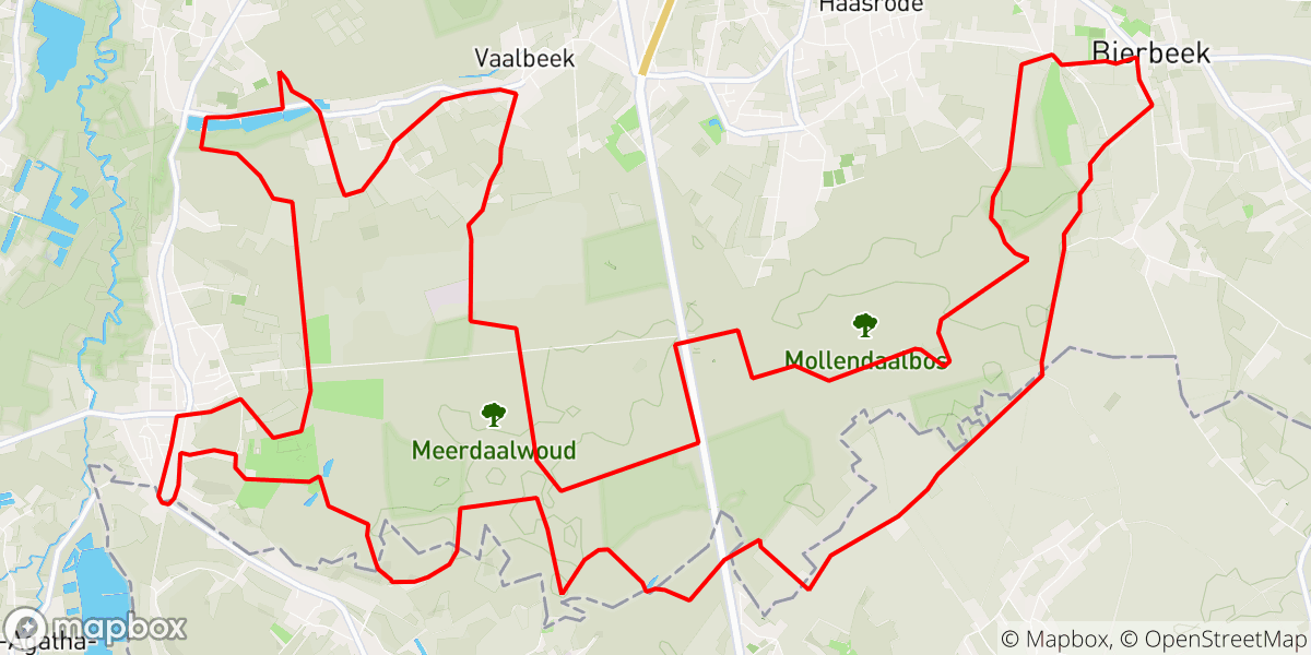 Mountainbikeroute Meerdaal Combinatie rode en blauwe lus Startplaats Bierbeek 79 % off-road