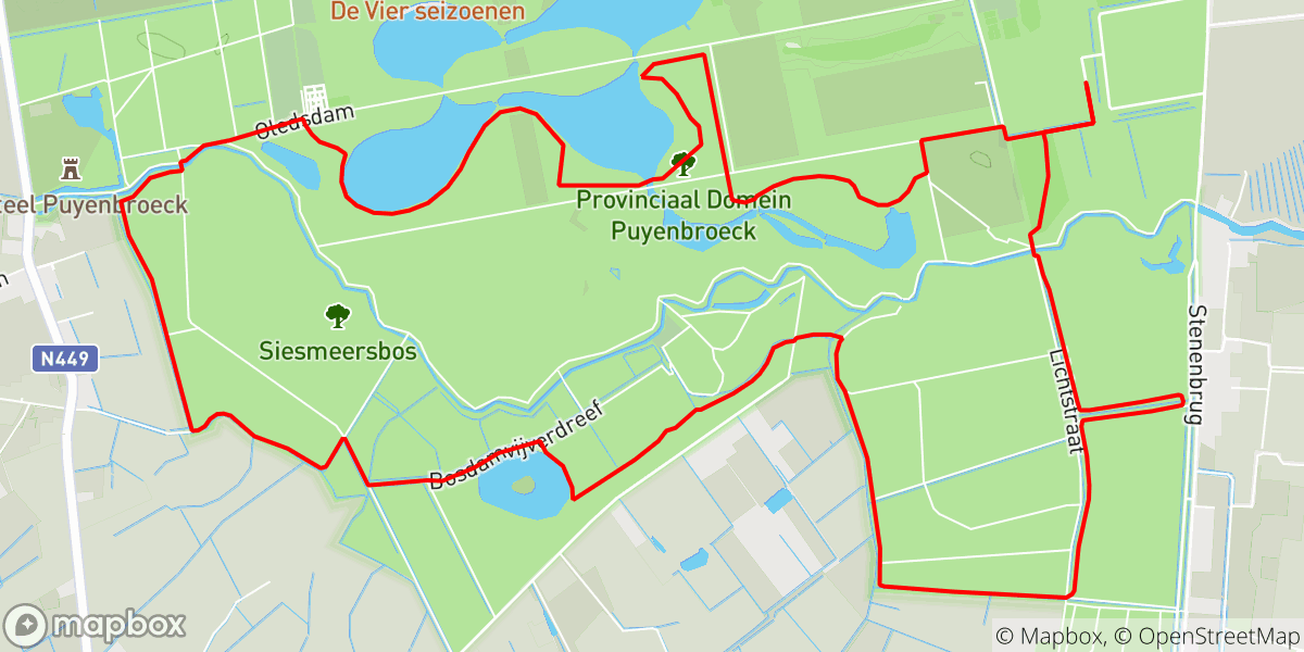 Mountainbikeroute De Puidonkroute Groene lus Startplaats Puyenbroeck 92 % off-road